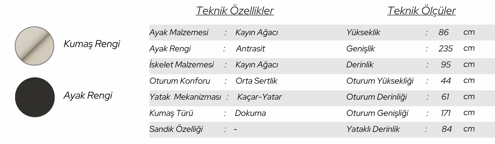 Hem sırt kısmı hem de kollarının mekanizmalı açılma özelliği sayesinde geniş tek kişilik yatak olma özelliğine sahiptir.
