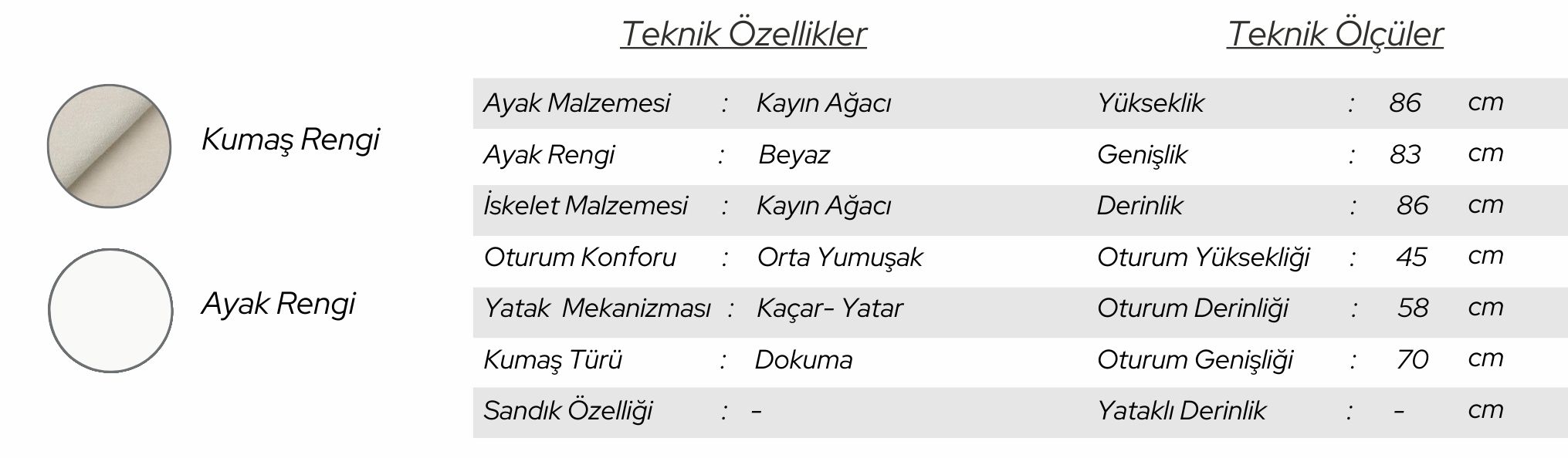 Yumuşak oturum yapısı ve şık formu ile hem misafirlerinizi ağırlarken hem de günlük yaşamda keyifli vakit geçirmenizi sağlar. Hazeranın doğal dokusu, evinize ferah bir atmosfer kazandırırken, takımın uyumlu tasarımı farklı dekorasyon stillerine kolaylıkla adapte olur.